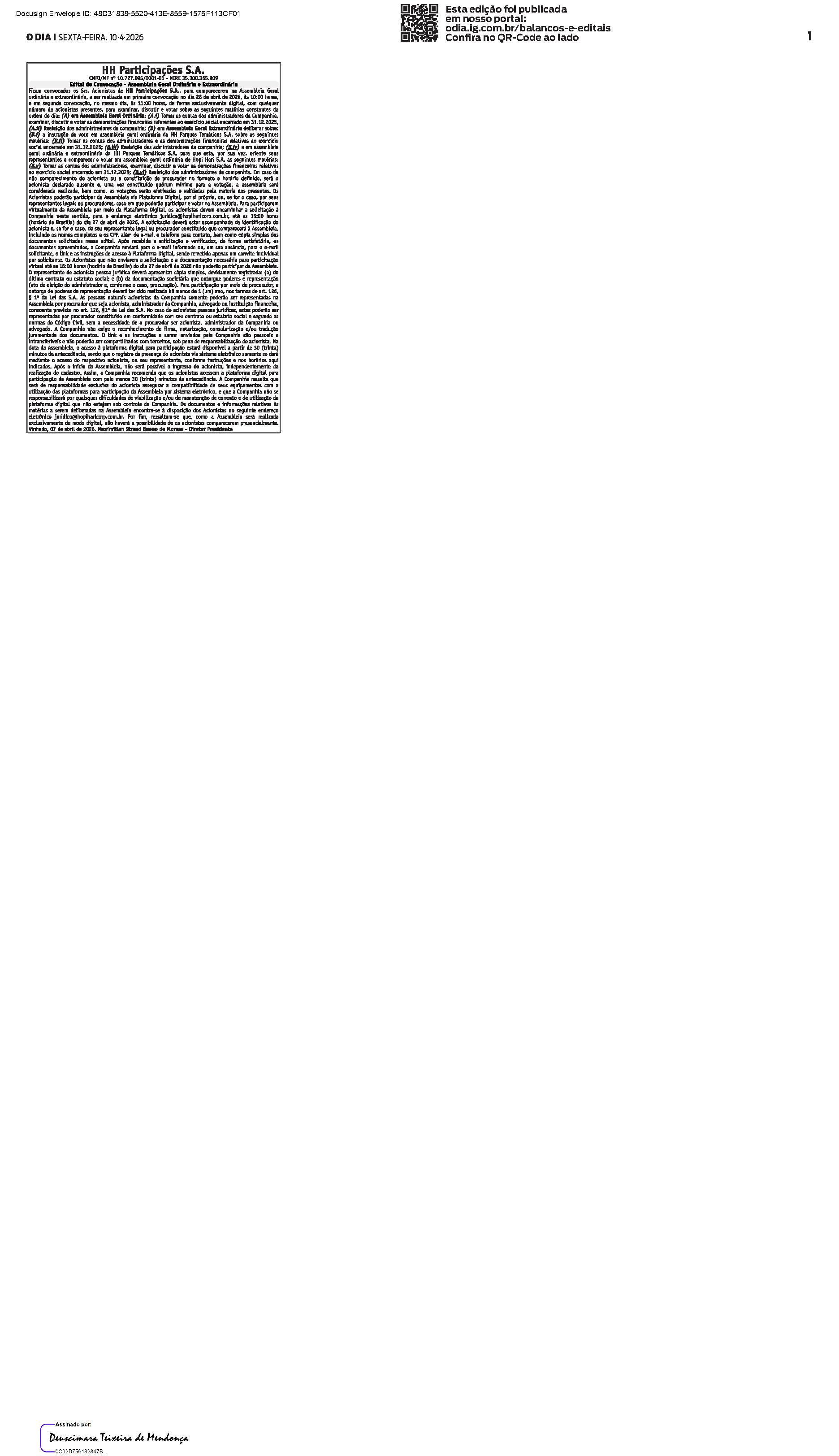 Balanços e Editais PUBLICAÇÃO CERTIFICADA 10/04/2026 PUBLICAÇÃO CERTIFICADA 10/04/2026 Publicado há 7 minutos