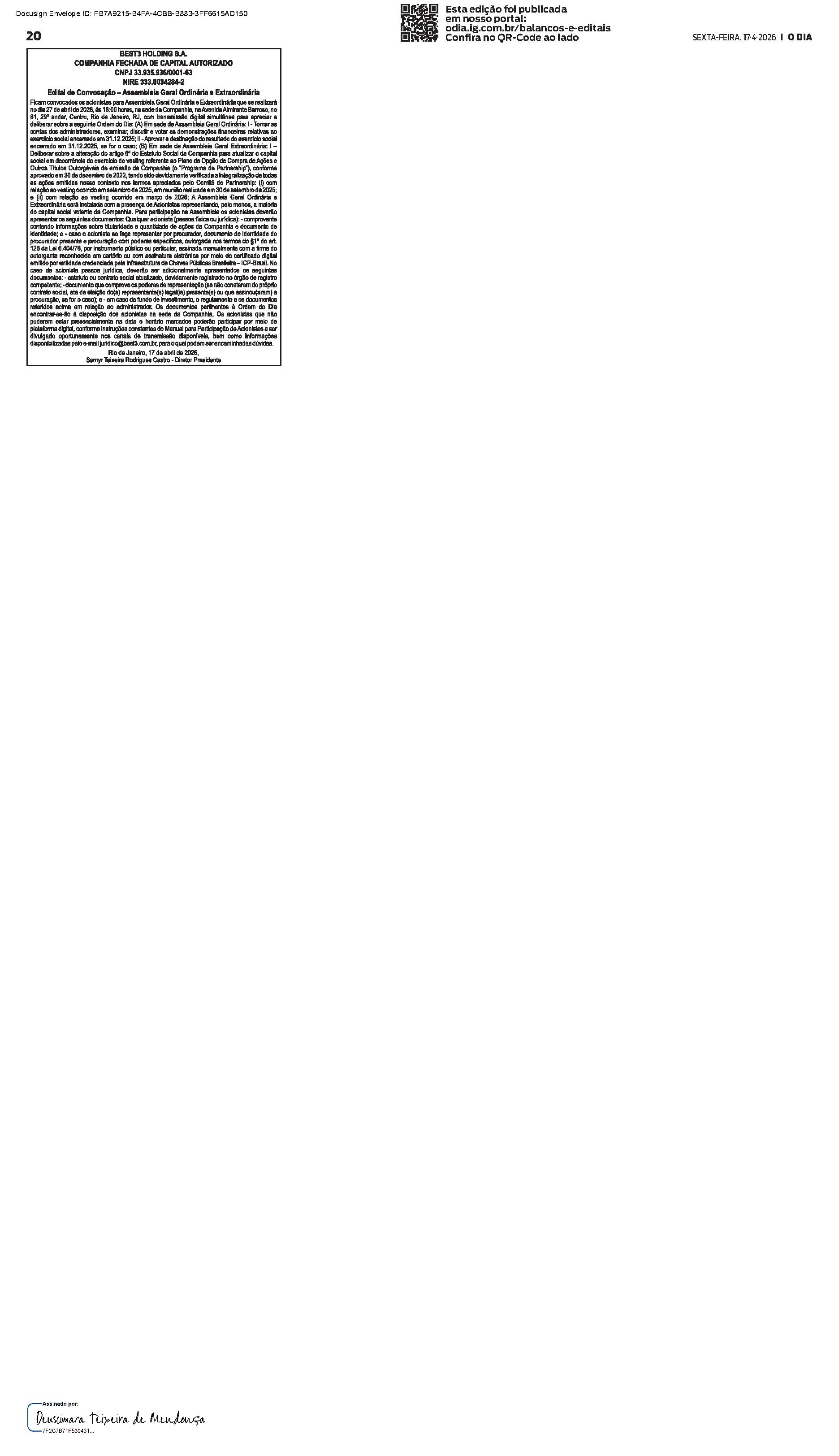 O Diaredacao@odia.com.br Publicado 17/04/2026 00:00 | Atualizado 17/04/2026 11:24 Download PDF Download PDF BEST3 HOLDING S.A. Relatar erro Você pode gostar Comentários Os comentários não representam a opinião do jornal e são de responsabilidade do autor.