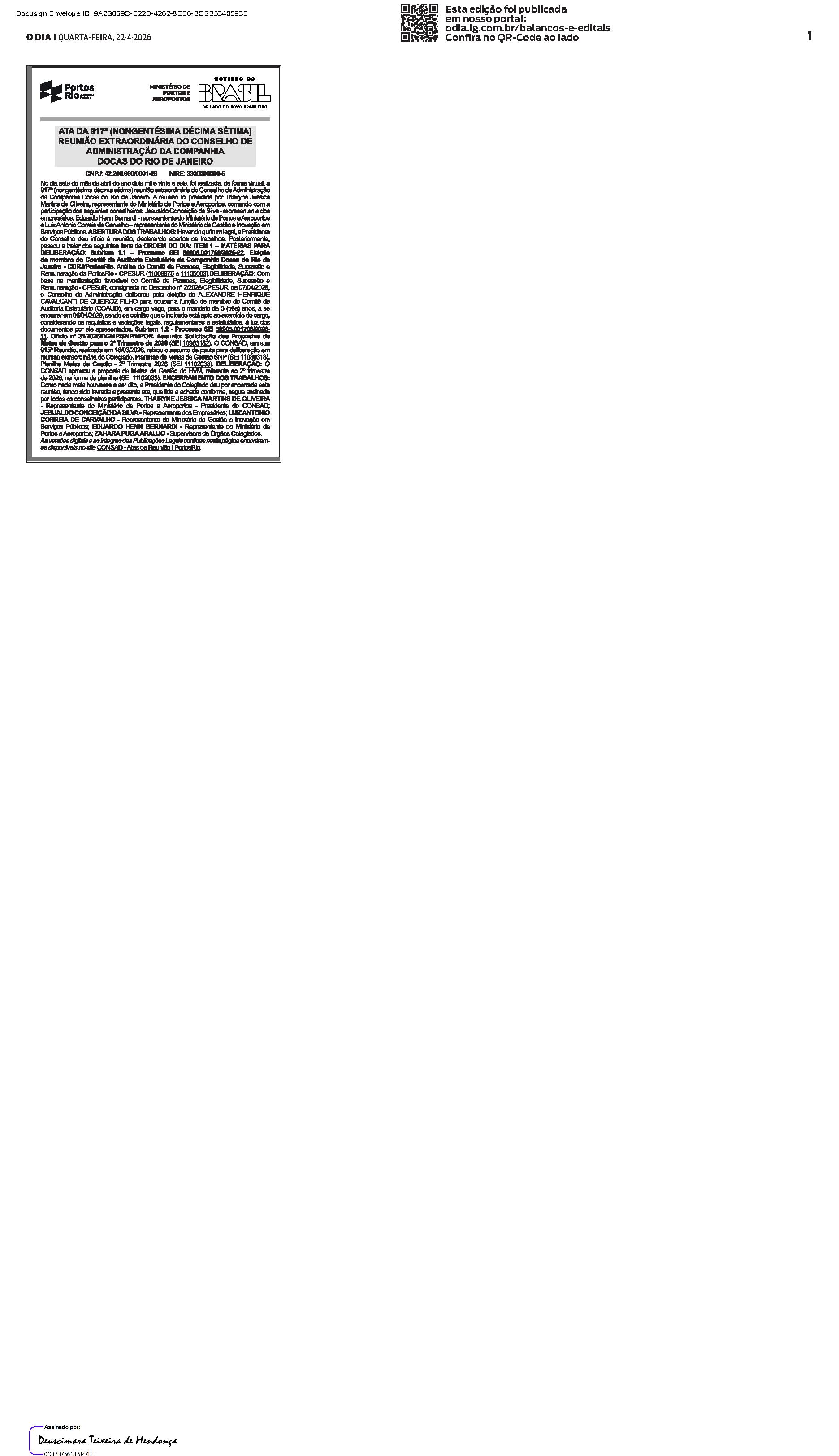 Balanços e Editais PUBLICAÇÃO CERTIFICADA 22/04/2026 PUBLICAÇÃO CERTIFICADA 22/04/2026 Publicado há 50 segundos