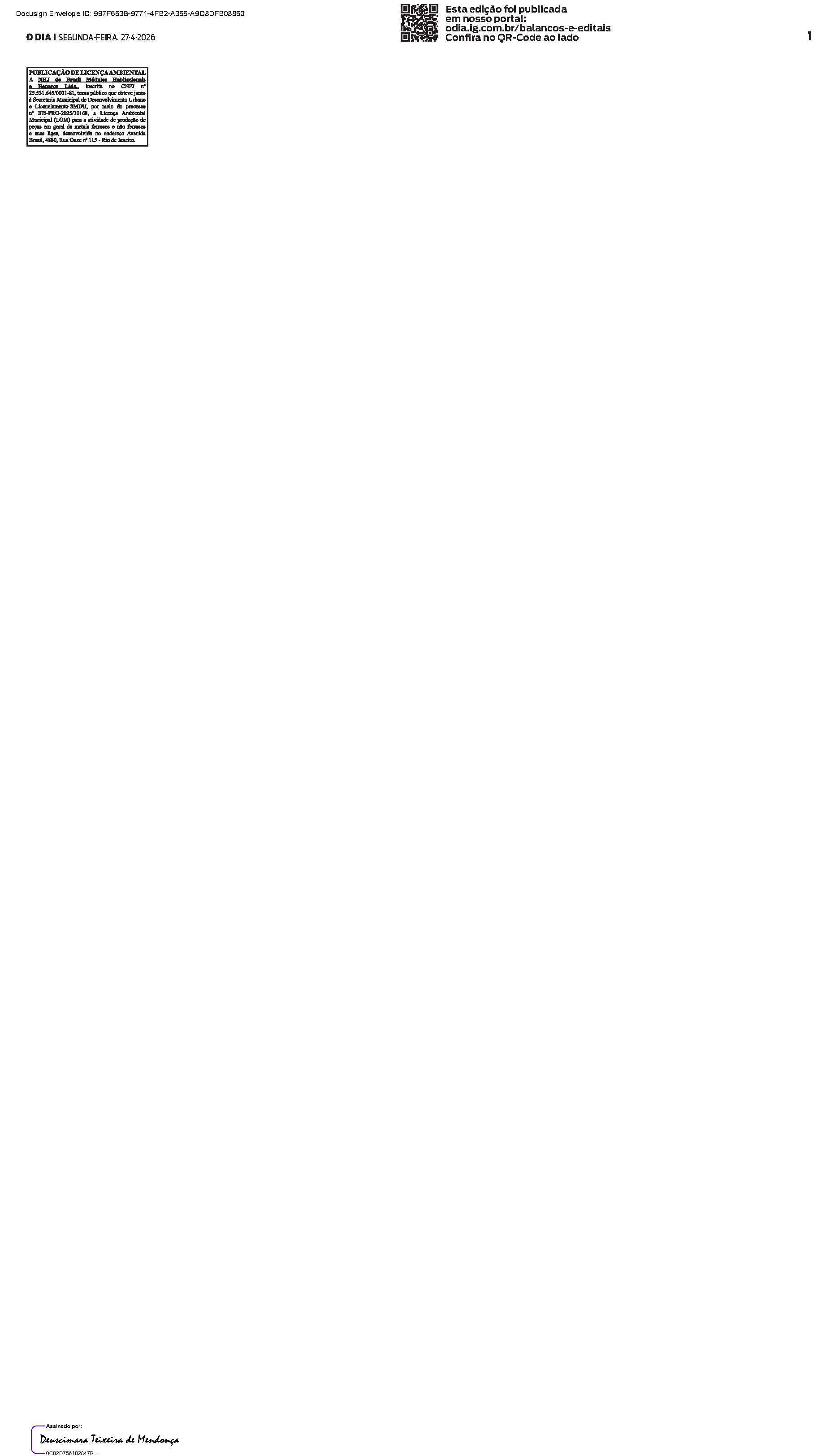 Balanços e Editais PUBLICAÇÃO CERTIFICADA 27/04/2026 PUBLICAÇÃO CERTIFICADA 27/04/2026 Publicado há 5 minutos