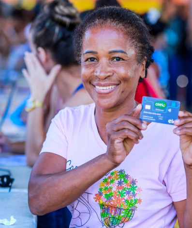 Carmem Aparecida, de 59 anos, relatou que perdeu tudo nas enchentes de janeiro. Ela saiu feliz com o cartão RecomeçarRafael Barreto/PMBR