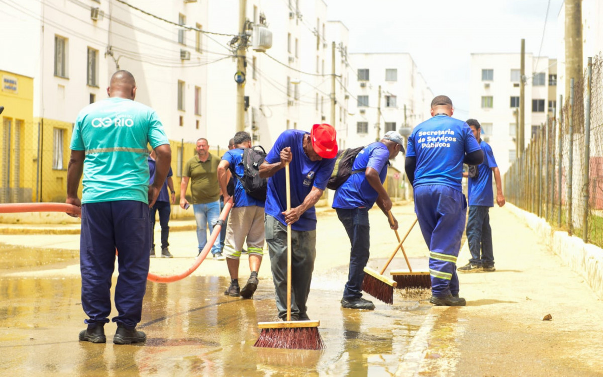Equipes trabalharam na limpeza dos condomínios afetados por temporal em Belford RoxoDivulgação