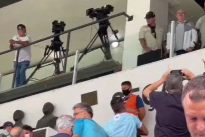 Em imagens, é possível ver o presidente acenando para um grupo que o apoiava. Porém, outros começaram a vaiar, inclusive houve princípio de discussão entre algumas pessoas da torcida.