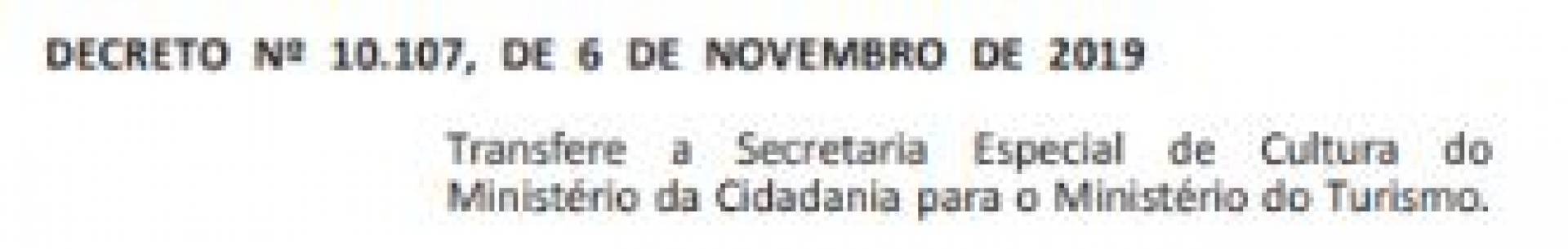 Segundo o Decreto, ficam transferidas para o Ministério do Turismo as competências de política nacion O Dia al de cultura; de proteção do patrimônio histórico, artístico e cultural; de regulação dos direitos autorais; de assistência ao Ministério da Agricultura, Pecuária e Abastecimento e ao Instituto Nacional de Colonização e Reforma Agrária nas ações de regularização fundiária, para garantir a preservação da identidade cultural dos remanescentes das comunidades dos quilombos; de desenvolvimento e implementação de políticas e ações de acessibilidade cultural; e formulação e implementação de políticas, programas e ações para o desenvolvimento do setor museal.