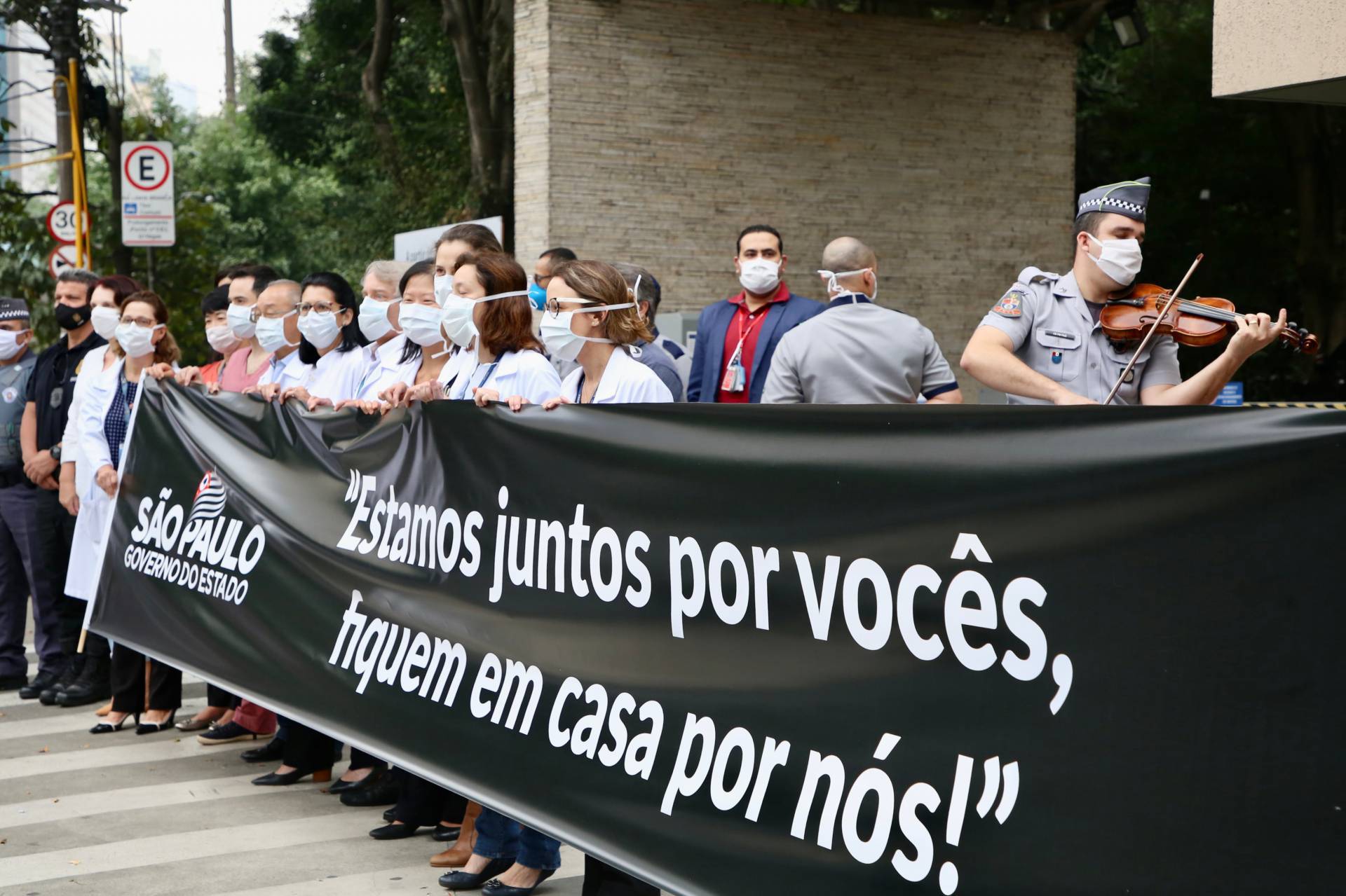 Segundo informações do Governo do Estado de São Paulo, a carreata foi formada por viaturas das policias Militar, Civil e Técnico-Científica, Bombeiros, Defesa Civil e do Grau (Grupo de Resgate e Atenção às Urgências e Emergências) deu um "abraço solidário" no quadrilátero da Saúde, que compreende os hospitais das Clinicas, Emílio Ribas e dos Institutos do Câncer, do Coração e Infantil, além da Faculdade de Medicina da USP e do Instituto Adolfo Lutz.