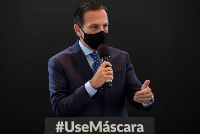 Governador João Doria disse que o uso de máscara no Estado será obrigatório até o fim deste ano, pelo menosNelson ALMEIDA/AFP