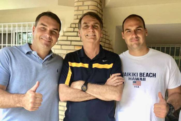 Bolsonaro entre os filhos Flávio e Eduardo Reprodução Facebook