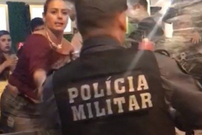 No vídeo é possível ver a mulher segurando um copo de cerveja na mão e, em seguida, jogando o objeto contra o rosto de um dos policiais. O oficial, então, pulou a barreira de segurança do bar e deu voz de prisão à cliente, que já estava imobilizada por outro policial.