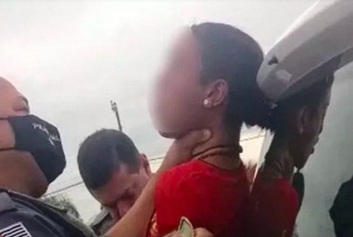 Em imagens divulgadas pela Tv Tem, a mulher aparece encostada na viatura, enquanto dois policiais realizam a abordagem. Ao tentar se desvencilhar do policial, ele a segura pelo pescoço e prensa o corpo da jovem contra o carro.