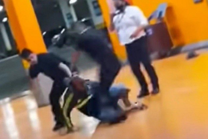 Cenas do vídeo no momento que João Alberto, negro, é espancado e assassinado por asfixia por seguranças (brancos) do Carrefour em Porto Alegre - Captura de vídeo
