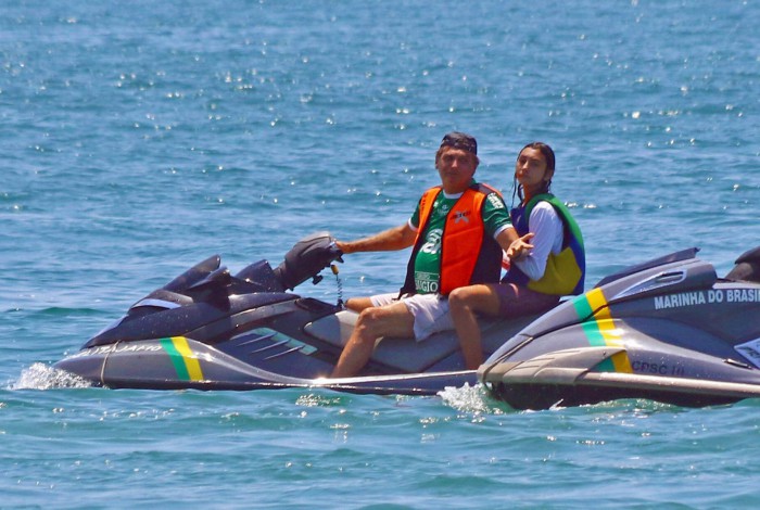 Mais recentes foram em uma pizzaria, onde posou para fotos e cumprimentou apoiadores e na cidade praiana catarinense, em um passeio de moto aquática