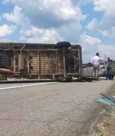 Van com 16 detentos capota e deixa feridos