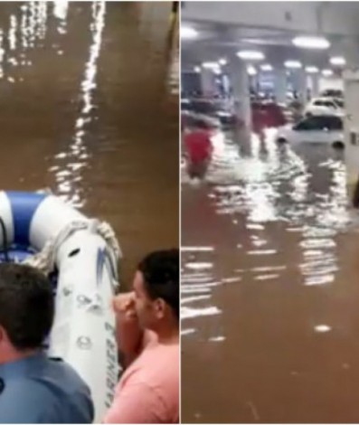 Porto Alegre - Após um temporal atingir Porto Alegre (RS), o estacionamento do subsolo de um shopping ficou completamente alagado. Em vídeo compartilhado nas redes sociais, é possível ver os motoristas sendo resgatados com a ajuda de um bote inflável, devido à quantidade de água.
