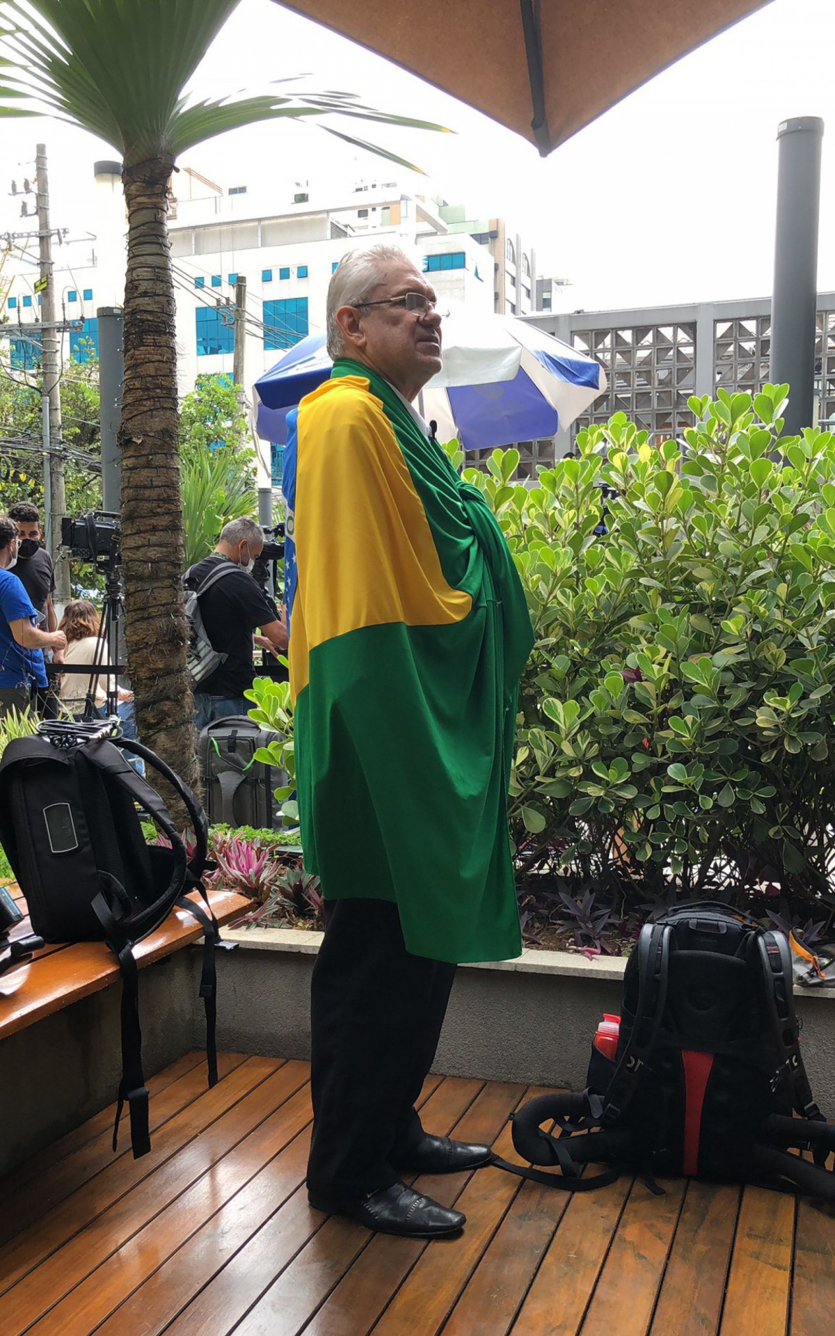 Com a bandeira do Brasil nos ombros e uma Bíblia debaixo dos braços, o professor aposentado prestou continência às câmeras, e declarou seu apoio ao presidente. A carta de Antônio, segundo ele, trazia uma mensagem de pronta recuperação ao presidente.