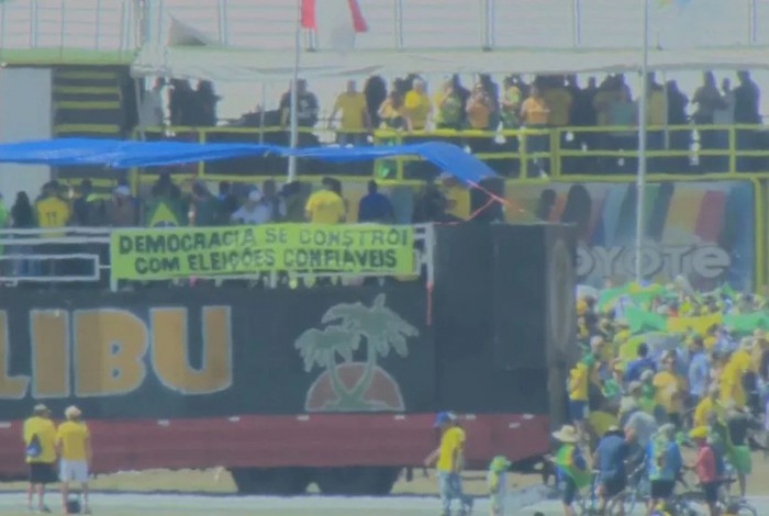 Nos carros de som, manifestantes dizem que Bolsonaro irá ao evento. O chefe do Executivo está no Palácio da Alvorada, sem agenda oficial.