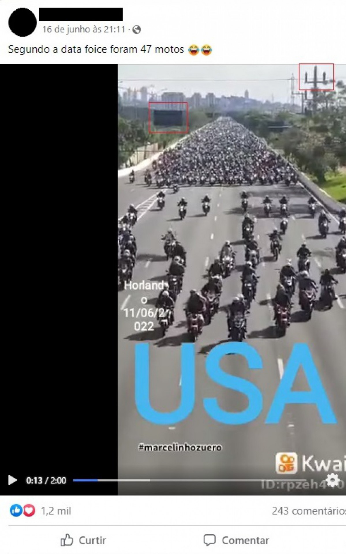 Onde foi publicado: Facebook e Kwai.