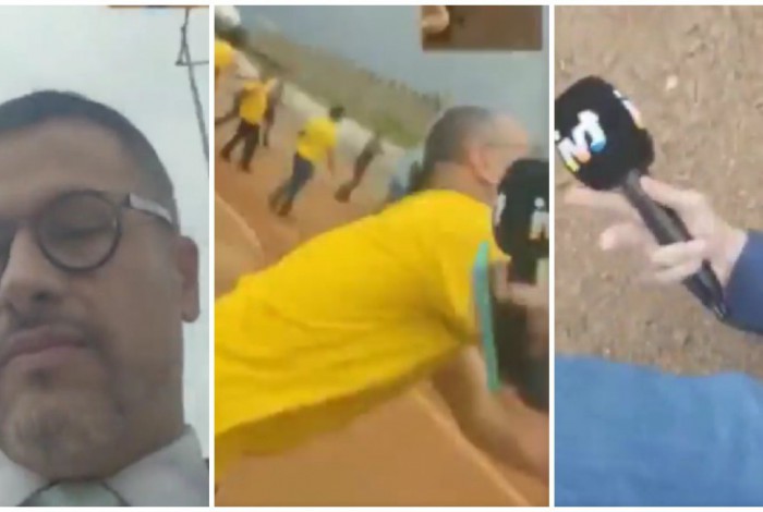 "Me deram uma voadora (uma espécie de chute), caí no chão, deram uma voadora no cinegrafista, que caiu no chão. O importante dessa história é que o pessoal do Exército estava lá e acolheu, protegeu a gente, a gente entrou em um carro e saiu escoltado. Rasgaram dois pneus e a gente teve que sair com dois pneus furados até conseguir trocar. O Exército agiu muito institucionalmente, protegeram a gente, rolou gás de pimenta", afirmou.