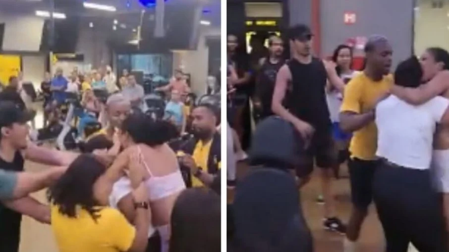 Os funcionários da academia e outros alunos até que tentaram acabar com a pancadaria, mas o esforço não conteve a troca de agressões. Em um momento, uma das envolvidas dá uma mordida no rosto da outra mulher.