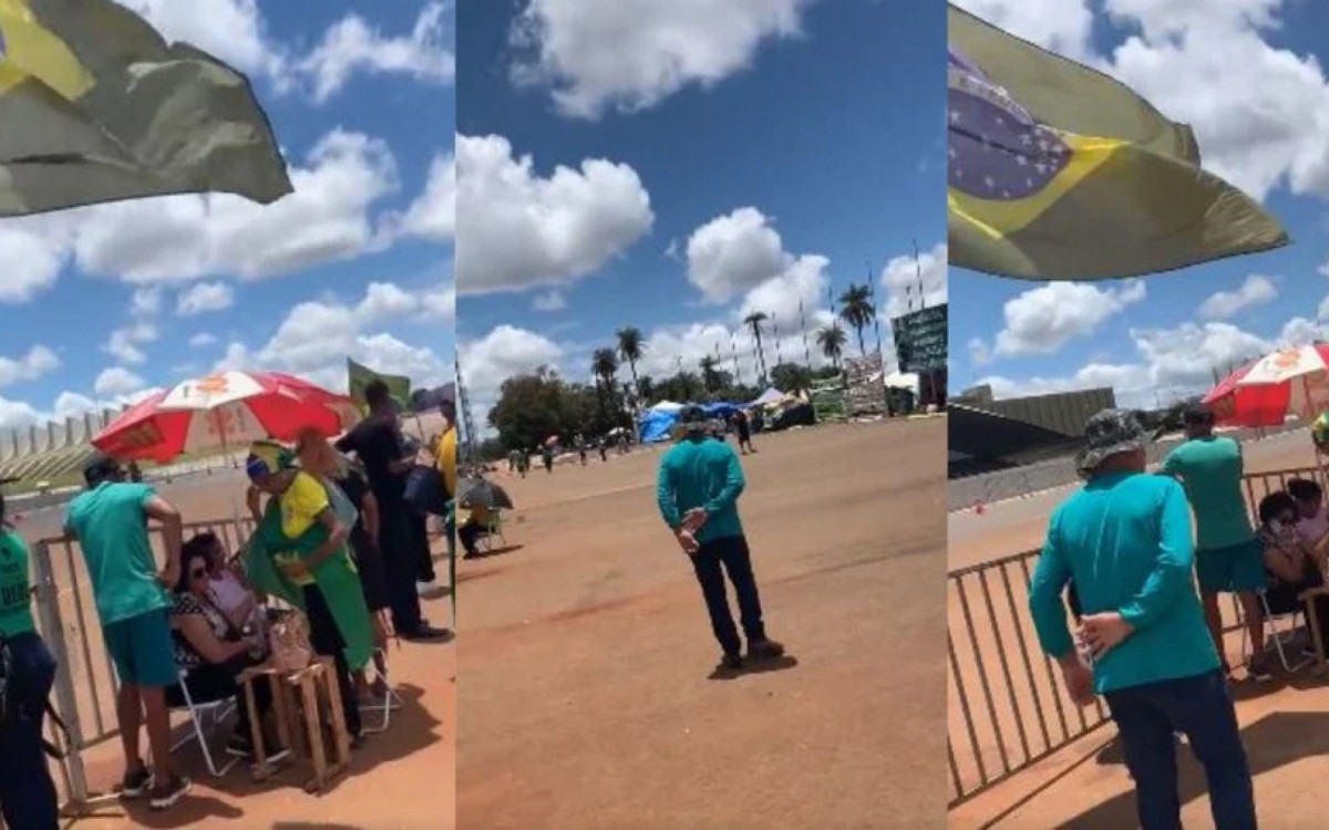 Gritos isolados no Quartel-general do Exército, em Brasília, neste domingo de posse de Lula. Indignado, homem diz que está decepcionado com Mourão e que Bolsonaro deixou os extremistas “sofrendo como bobo”. pic.twitter.com/ifv7wXhbCv