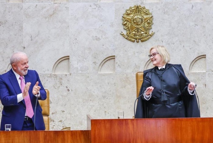 O presidente Lula aplaude a ministra e presidente do STF, Rosa Weber, durante a cerimônia de abertura do ano judiciário de 2023Ricardo Stuckert/PR
