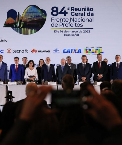 Lula participa da 84ª reunião geral da Frente Nacional de Prefeitos (FNP), em Brasília. Em tom eleitoral e em aceno aos dirigentes municipais, o presidente defendeu a relação entre União e entes federados e prometeu trabalhar para que bancos públicos emprestem dinheiro aos municípios.