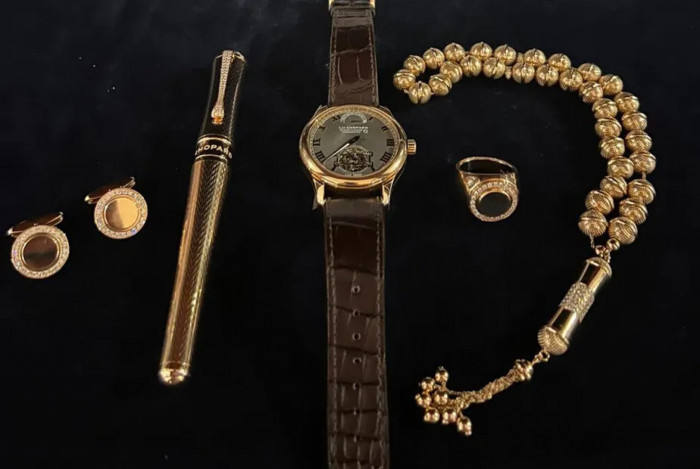 Brasília - A defesa de Jair Bolsonaro (PL) entregou, nesta sexta-feira, 24, o segundo conjunto joias avaliado em cerca de R$ 500 mil numa agência da Caixa Econômica Federal de Brasília. O presente do regime da Arábia Saudita ao ex-presidente da luxuosa marca suíça Chopard é composto por relógio, caneta, anel, abotoaduras e masbaha, um tipo de rosário.