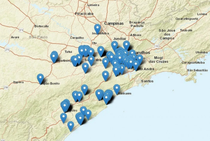 São Paulo - Cerca de 20 cidades no estado de São Paulo tiveram relatos de tremores causados pelo abalo sísmico que foi sentido na manhã desta sexta-feira (16). O Centro de Sismometria da Universidade de São Paulo publicou um mapa (acima) com os locais de cada relato.