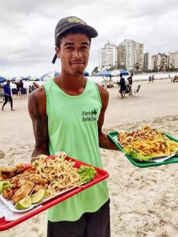 Felipe Nascimento, de 22 anos, trabalhando na praiaReprodução Facebook/Estadão