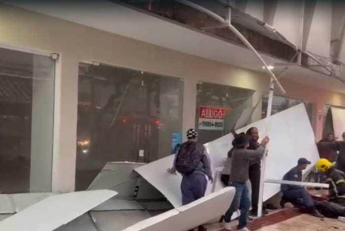 A segunda vítima, uma mulher de 29 anos que se abrigava da chuva no momento do acidente, foi encontrada presa embaixo da estrutura metálica que servia como acabamento da marquise. Moradores auxiliaram na elevação do objeto até a chegada das guarnições.
