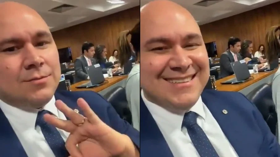 Brasília - O deputado federal Abílio Brunini (PL), foi acusado de fazer um gesto supremacista durante a sessão da Comissão Parlamentar Mista de Inquérito (CPMI) que investiga os atos antidemocráticos de 8 de janeiro. Nas imagens, é possível ver Brunini fazendo o gesto para o celular enquanto grava um vídeo.