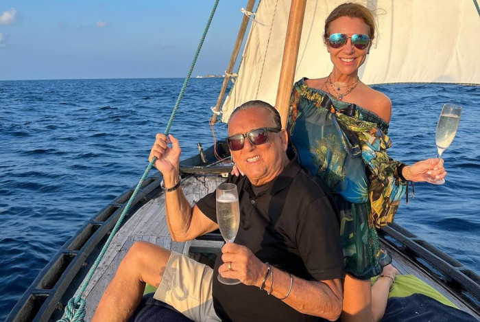 Ao lado da mulher, Dessirée Soares, Galvão Bueno está no centro de polêmica pela dívida de R$ 2,6 milhões com a UniãoReprodução / Instagram