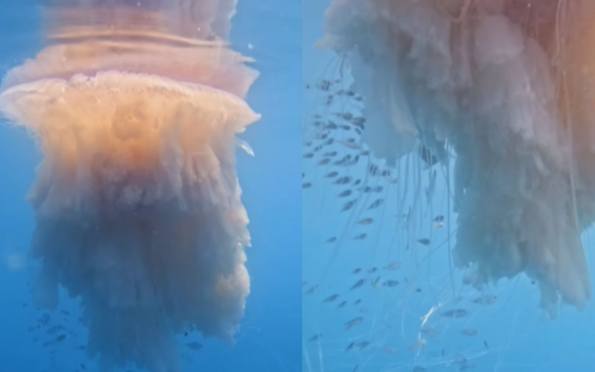 Ao lado da água-viva, havia também uma série de peixes que usam seus tentáculos como abrigoReprodução / Redes sociais