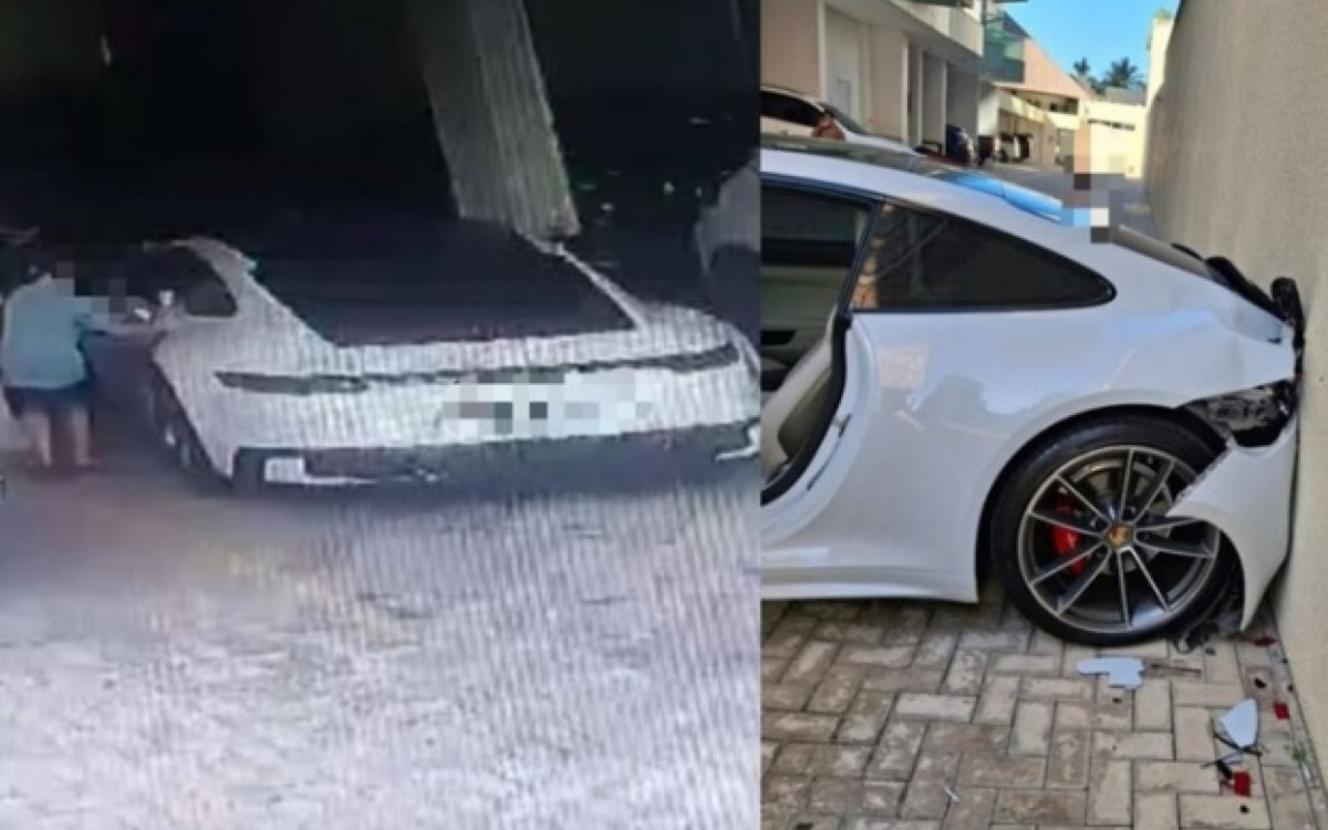 Garoto de 9 anos liga Porsche do vizinho e bate contra a parede em SC Reprodução