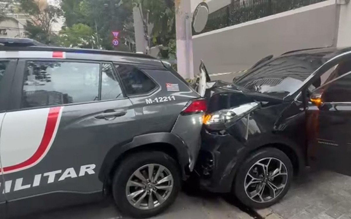 A PM foi acionada, e uma das equipes usou uma viatura para bloquear a saída dos suspeitos, estacionando o carro na frente do portão do edifício.