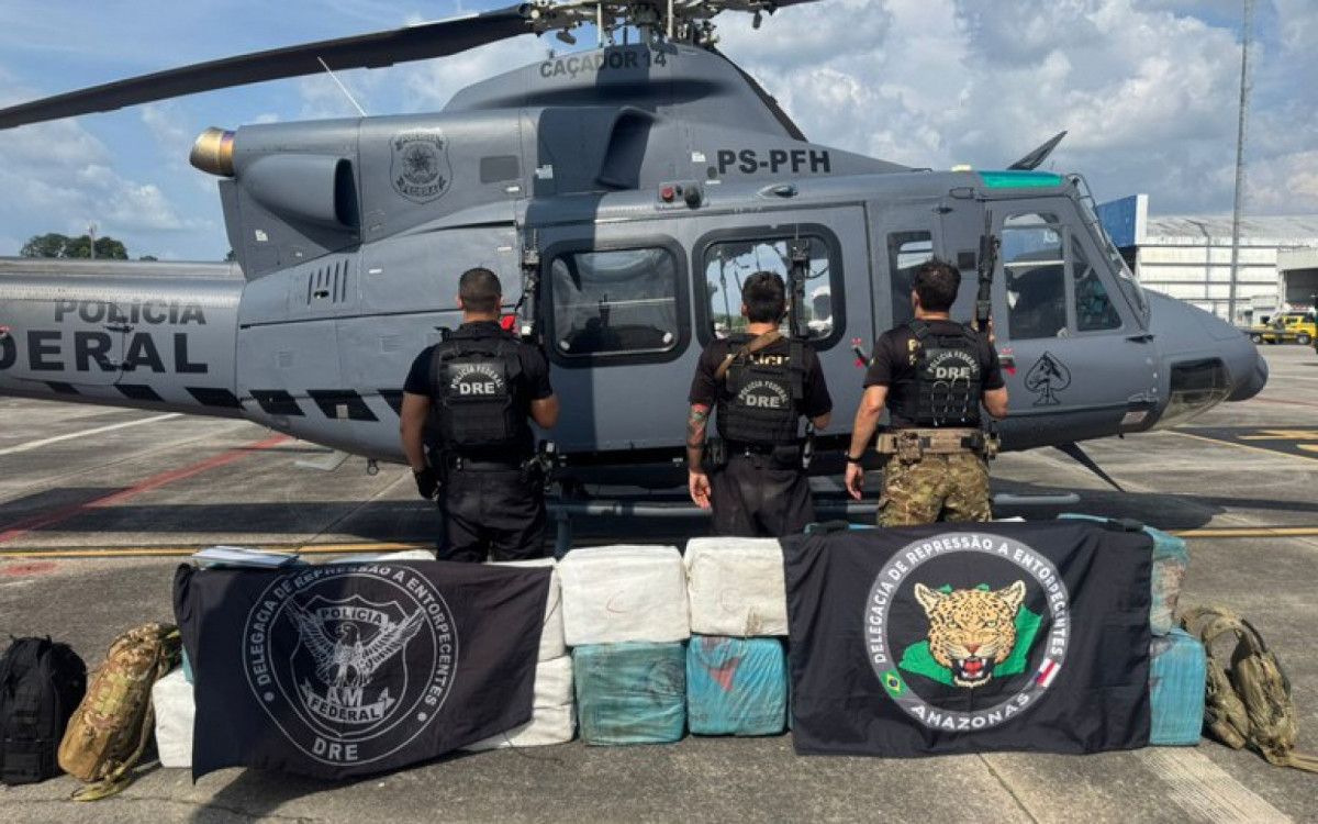 Policiais federais, em helicóptero, que se deslocaram para as Medidas de Controle de Solo (MCS), apreenderam 380 kg de skunk, uma das variações da maconha, no interior do avião, e os encaminharam à Superintendência da PF, em Manaus.