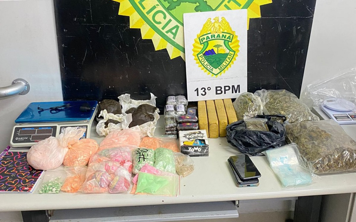 Também foram realizadas buscas na residência que confirmaram a suspeita de tráfico de drogas. Foram apreendidos 7,3 kg de haxixe, 17,7 kg de maconha, 6,5 mil comprimidos de ecstasy, uma balança de precisão, dois cadernos com anotações, três celulares, além de 40g de MDMA