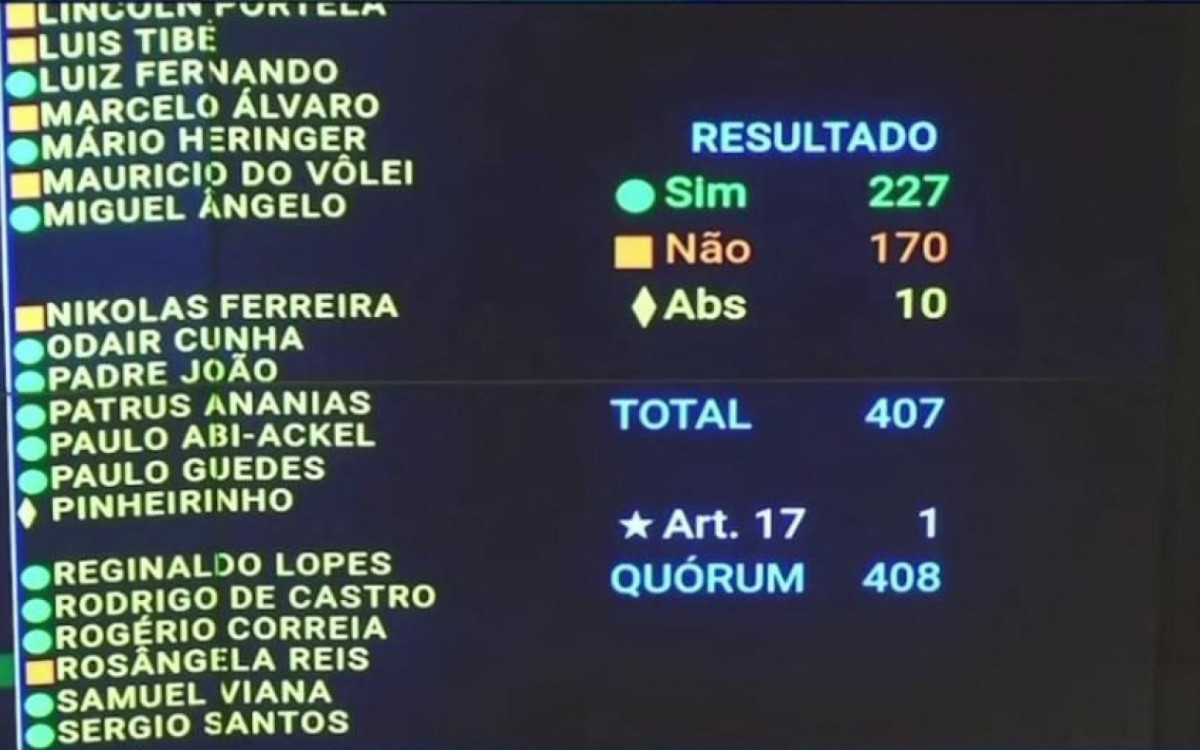 Os dez parlamentares que se abstiveram foram: Luiz Nishimori (PSD-PR), Pinheirinho (PP-MG), Romero Rodrigues (Podemos-PB), Benes Leocádio (União Brasil-RN), Jorge Goetten (Republicanos-SC), Júnior Ferrari (PSD-PA), Delegado Bruno Lima (PP-SP), Fabio Macedo (Podemos-MA), Fausto Pinato (PP-SP) e João Leão (PP-BA).