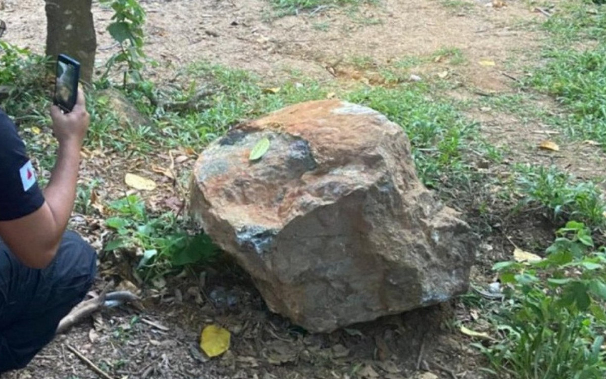 Na pedra, havia uma mancha de sangue e fiapos da roupa da vítima grudadosDivulgação / PMMG