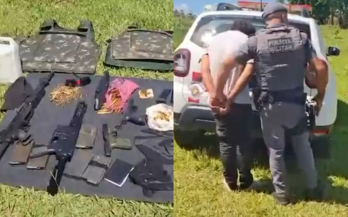 Dois suspeitos foram presos e outros dois fugiram pela mata. A Polícia Militar utiliza drone para verificar se há outros criminosos escondidos na área.