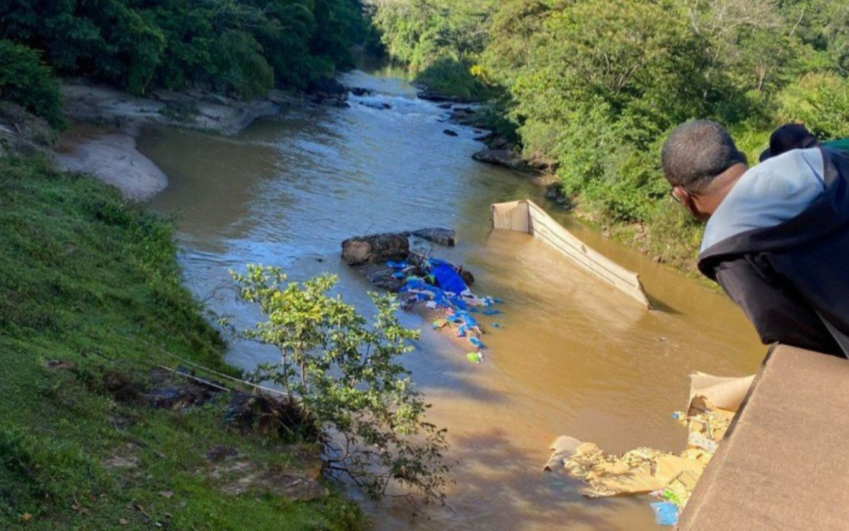 O veículo transportava uma carga de carnes empacotadas, e o caminhão ficou totalmente submerso no rio. A vítima ainda não teve a identidade confirmada.