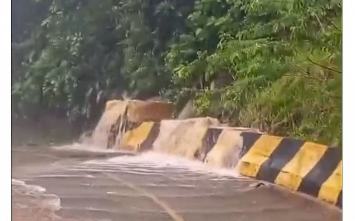 As estradas de acesso a Peruíbe foram afetadas pela chuvaDefesa Civil-SP/Reprodução
