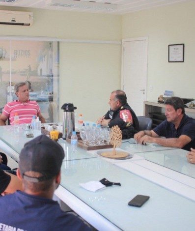 Búzios - Nesta semana o prefeito de Búzios, Alexandre Martins, recebeu em seu gabinete o Tenente Coronel Marcos Aboud, o Secretário de Segurança e Ordem Pública, Sérgio Ferreira e os coordenadores do Programa Estadual de Integração na Segurança (PROEIS) e Coordenadoria de Trânsito e Transporte (CTT) para deliberar sobre as ações de ordem e planejamento para a chegada do verão.