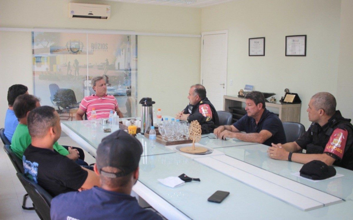Búzios - Nesta semana o prefeito de Búzios, Alexandre Martins, recebeu em seu gabinete o Tenente Coronel Marcos Aboud, o Secretário de Segurança e Ordem Pública, Sérgio Ferreira e os coordenadores do Programa Estadual de Integração na Segurança (PROEIS) e Coordenadoria de Trânsito e Transporte (CTT) para deliberar sobre as ações de ordem e planejamento para a chegada do verão.