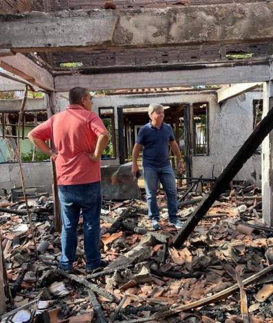 O gestor levou o secretário para dar procedimento ao início da limpeza e recolhimento dos restos do incêndio no local. Uma equipe da secretaria realizará todo o serviço de limpeza da sede.