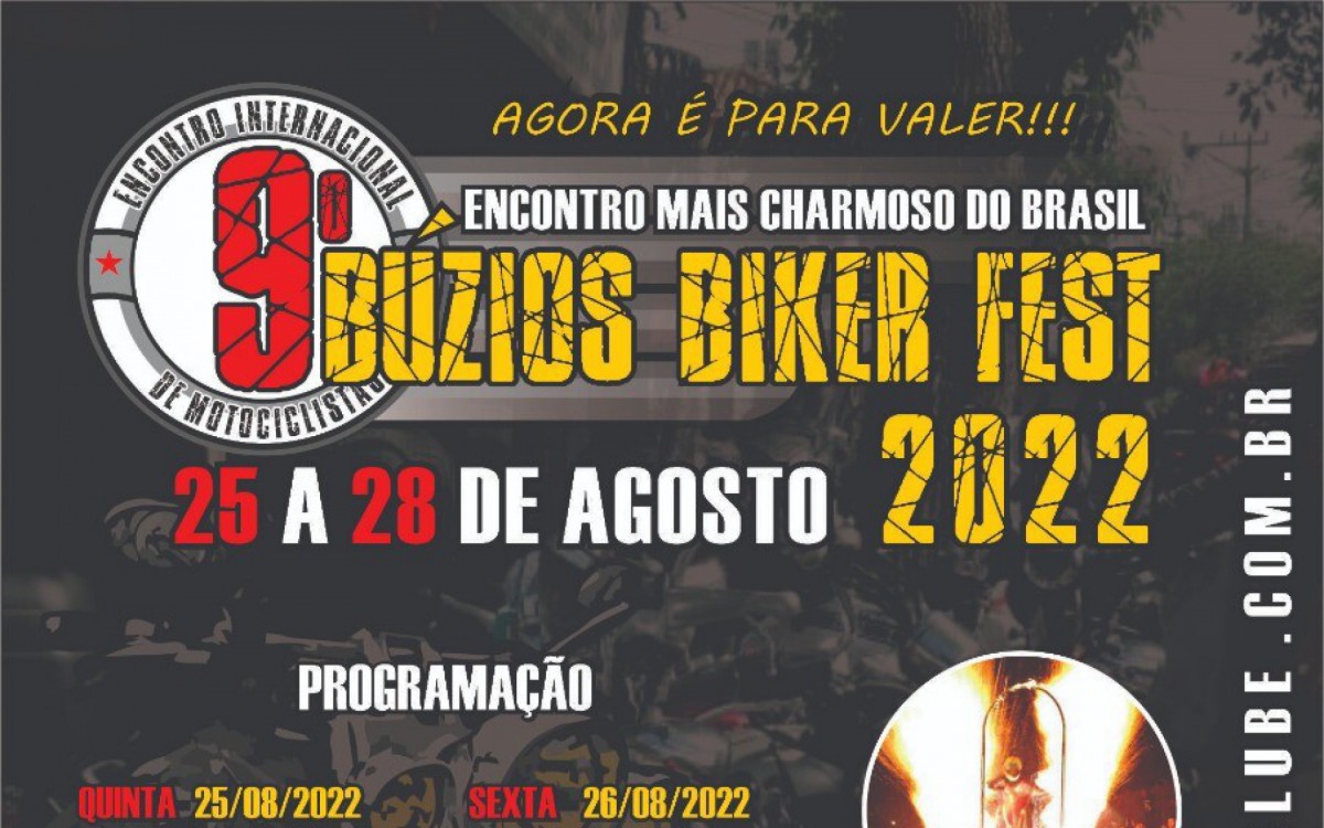 Búzios - Búzios, a península mais badalada do Brasil, sedia nestes dias 25 a 28 de agosto o “9º Búzios Biker Festa 2022”. O encontro internacional de motociclismo será realizado na Sociedade Esportiva de Búzios (SEB), no centro da cidade, pelo Búzios Moto Clube e Prefeitura de Búzios.