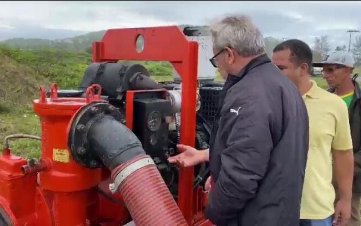 Na segunda-feira (28), a Secretaria de Obras realizou a instalação da primeira bomba com vazão de 5 milhões de litros/h em Tucuns para escoar as áreas alagadas dos bairros de São José e Capão. Toda a operação está sendo acompanhada pelo secretário de Obras e vice-prefeito Miguel Pereira e pelo prefeito Alexandre Martins.
