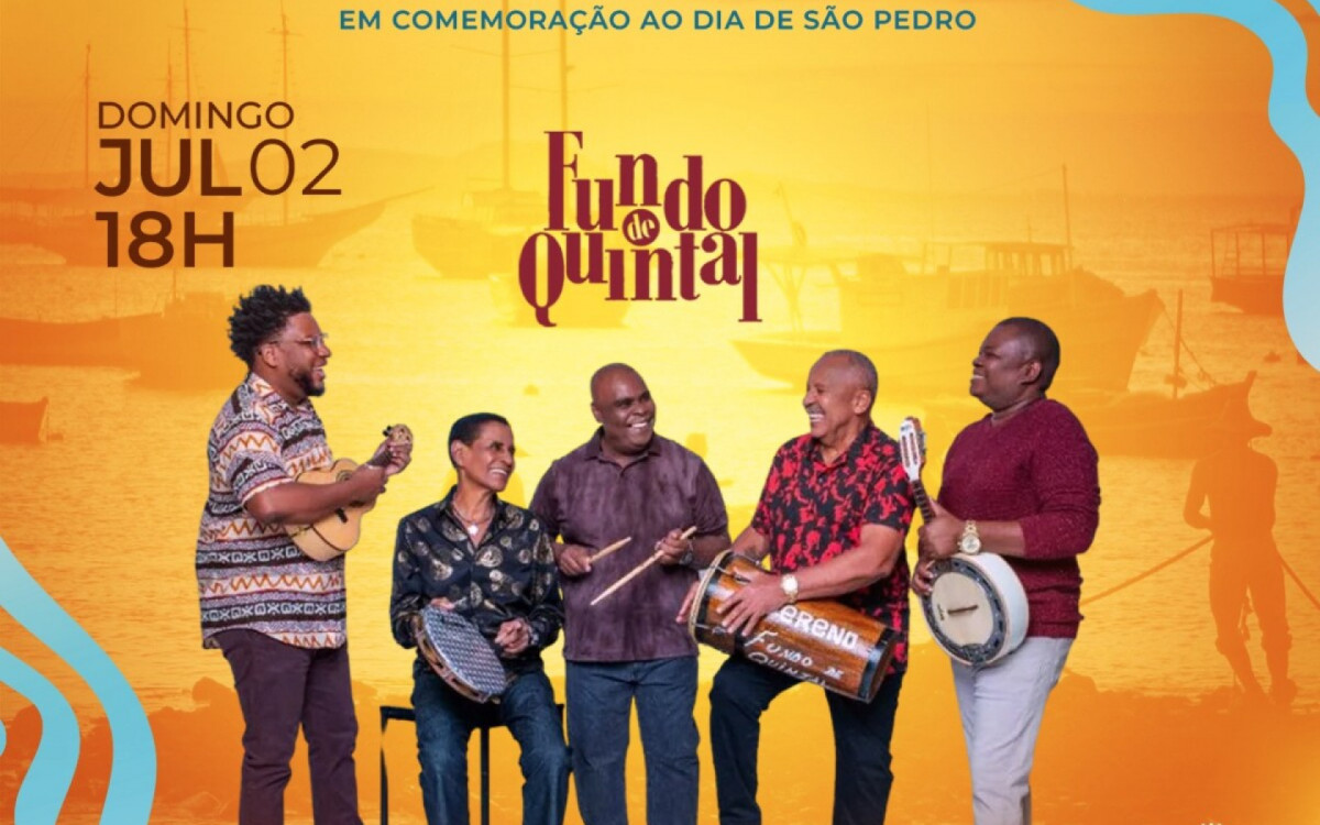 À noite, para encerrar com chave de ouro os festejos da Festa dos Pescadores, o famoso grupo de samba que nasceu nos anos 70, Fundo de Quintal faz a festa com músicas inéditas.