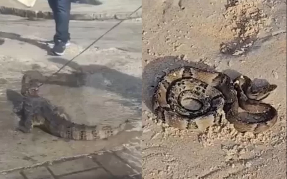 No caso do jacaré, um vídeo mostra o momento em que o animal é contido por um morador, que utilizou um fio amarrado ao pescoço do réptil como forma de segurança. Durante a espera pelo resgate, outra pessoa joga água sobre o animal, aparentemente para mantê-lo calmo. A cena inusitada gerou preocupação entre os vizinhos.