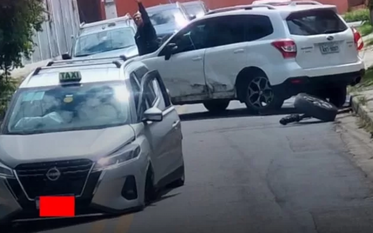 Um táxi teve uma das rodas dianteiras desprendida após a colisão. A estrutura da roda ficou no meio da pista.