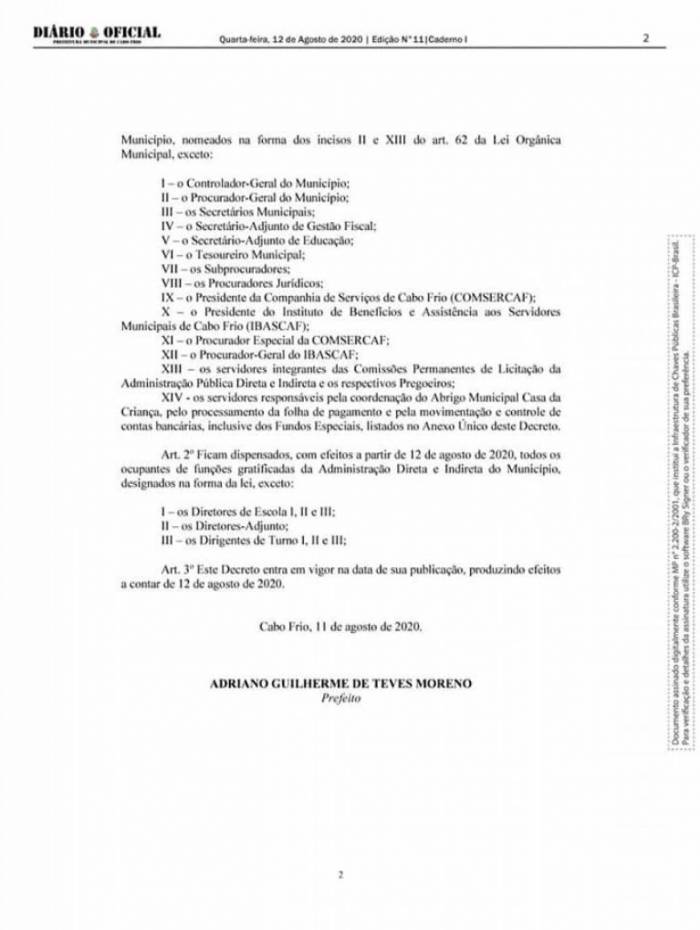 Decreto do Prefeito demitindo 1240 cargos comissionados - Prefeitura de Cabo Frio